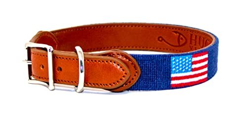 1. American Flag Needlepoint Dog Collar w/ Full-Grain Leather Backing and …